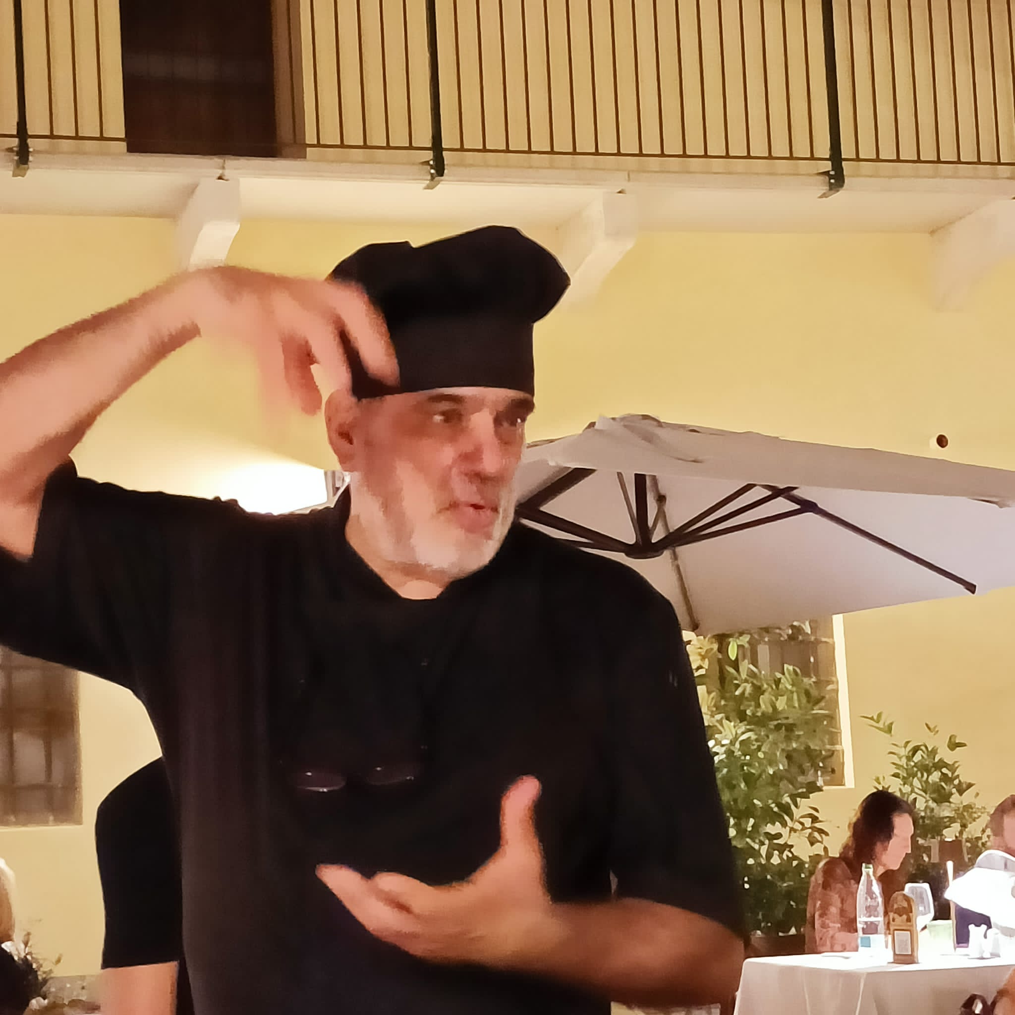 Dopo la pausa estiva la delegazione di Cremon dell’Accademia Italiana della Cucina si è ritrovata per proseguire la serie delle conviviali presso il ristorante Il Cantinone di Casalbuttano, che il patron Gianluca Pietroni ha comunicato di avere scelto come sede definitiva, abbandonando quella storica di via Ghinaglia in città. Perciò chi vorrà gustare i piatti tipici della cucina romana dovrà spostarsi a Casalbuttano, ma ne varrà la pena. Dal portico d’ingresso ci si affaccia su un ampio cortile con tavoli elegantemente apparecchiati, un ambiente adatto a piacevoli cene estive. I locali interni sono attualmente in via di ristrutturazione proprio per un’accoglienza adeguata anche nella stagione autunnale e invernale. Il Cantinone, come si diceva, è un angolo di romanità trapiantato nella Pianura Padana: i piatti serviti infatti sono quelli tipici della cucina capitolina, seguendo la stagionalità delle materie prime e del periodo. Dai taglieri del norcino e dei pecorini al pepe e al peperoncino accompagnati da verdure grigliate e giardiniera della casa, alle paste alla carbonara, all’amatriciana, al cacio e pepe, alla pecorara, alla porchetta, alla trippa romana, alla coda alla vaccinara, ai carciofi e ai supplì. La cantina è curata e presenta etichette prestigiose, tra le quali non mancano quelle della Tognazza che provengono dalla tenuta laziale condotta da Gianmarco Tognazzi, figlio del grande Ugo.