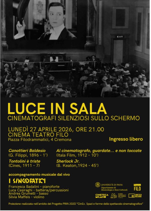 Lunedì 27 aprile alle 21 presso il Cinema Teatro Filo avrà luogo una proiezione di cortometraggi muti. In particolare verrà proiettato il filmato Lumière Canottieri Cremona (n. 633 del catalogo Lumière) realizzato da Giuseppe Filippi nel settembre 1896 presso la Società Baldesio di Cremona, proiettato per la prima volta proprio al Teatro dei Filodrammatici. Si tratta di un’occasione preziosa alla quale spero che possa essere presente.