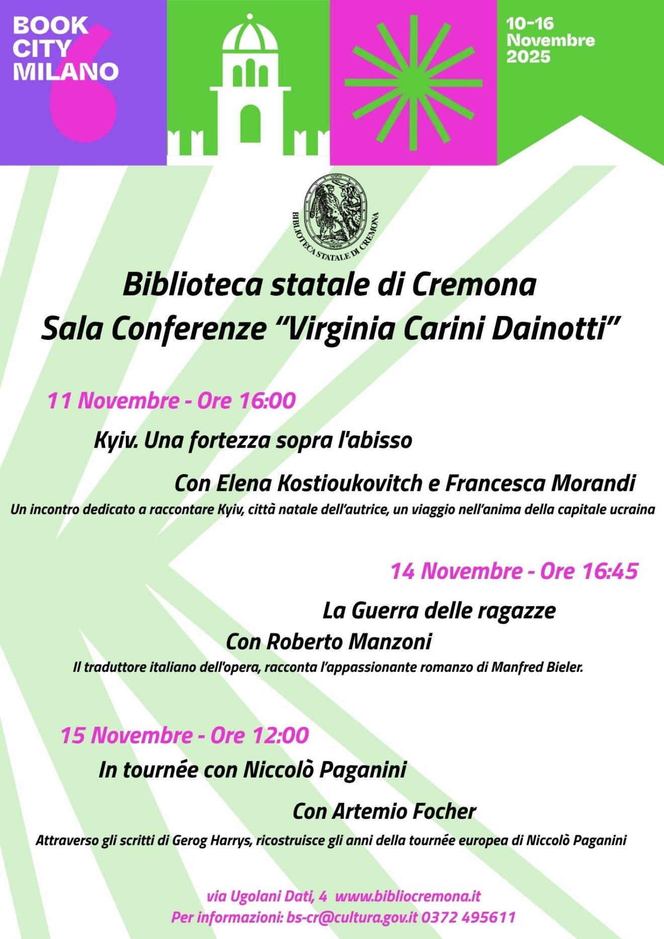 La Biblioteca Statale di Cremona, via Ugolani Dati, comunica il ricco calendario di incontri in programma nel mese di novembre.