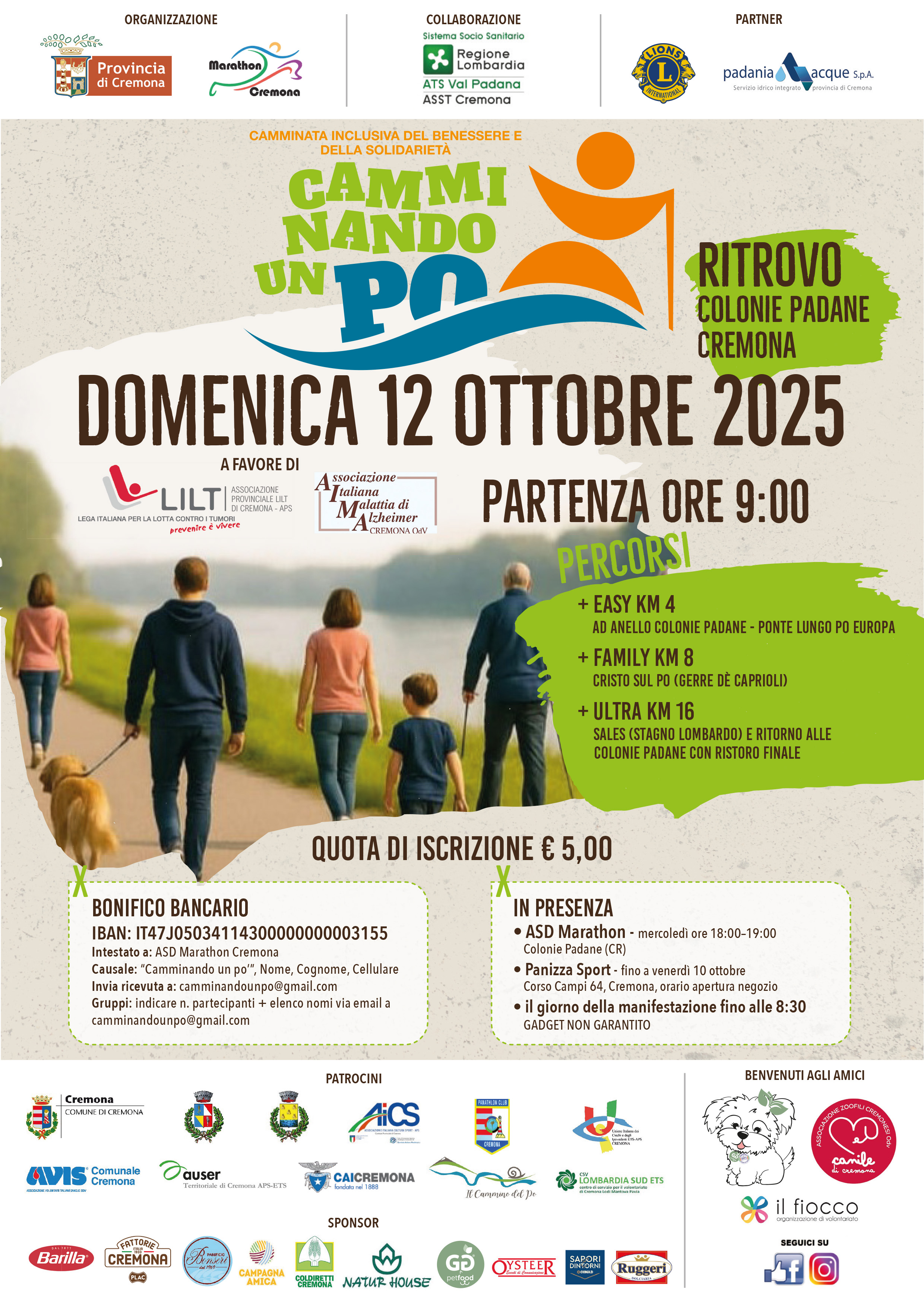 In chiusura, l’intervento del direttore socio-sanitario dell’ASST di Cremona, Giorgio Scivoletto, che ha riassunto il senso profondo della manifestazione: “La prevenzione ha valore solo se inserita in una visione più ampia di promozione della salute, capace di coinvolgere istituzioni, professionisti e terzo settore. Camminando un Po è un esempio concreto di come la comunità possa ritrovarsi attorno a corretti stili di vita – alimentazione, attività fisica, benessere sociale – superando la frammentarietà degli interventi. Fare attività fisica non significa diventare campioni: anche azioni semplici, come accompagnare i bambini in passeggino, sono movimento e contribuiscono a migliorare la qualità della vita”.