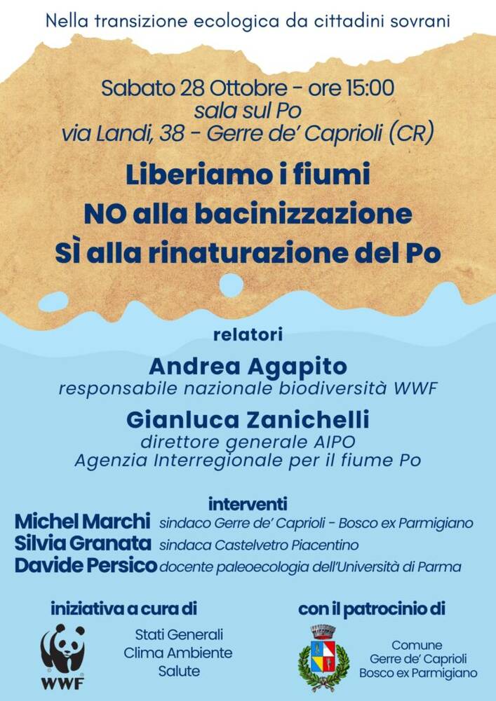 Sabato 28 ottobre ore 15 Sala sul Po via Landi 38, Gerre de’ Caprioli Bosco ex Parmigiano si terrà un incontro pubblico sul tema ‘Liberiamo i fiumi. No alla bacinizzazione, Sì alla rinaturazione del Po’. Relatori Andrea Agapito Ludovici responsabile nazionale acque e biodiversità WWF Gianluca Zanichelli direttore generale AIPO Agenzia interregionale per il fiume […]