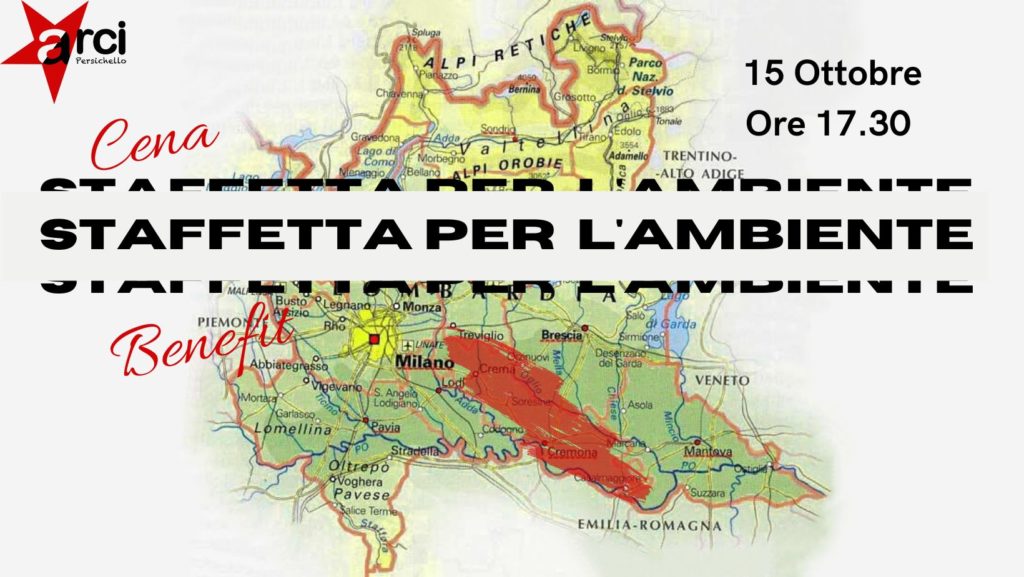 Sabato 15 ottobre la Staffetta per l’Ambiente toccherà il territorio cremonese e farà tappa al circolo Arci di Persichello. Per le 17 è previsto l’arrivo. La Staffetta per l’Ambiente è promossa da Rete Ambiente Lombardia con attivisti del comitato Basta Veleni, che dal 9 agosto 2021 occupa un presidio permanente sotto la prefettura di Brescia per denunciare […]