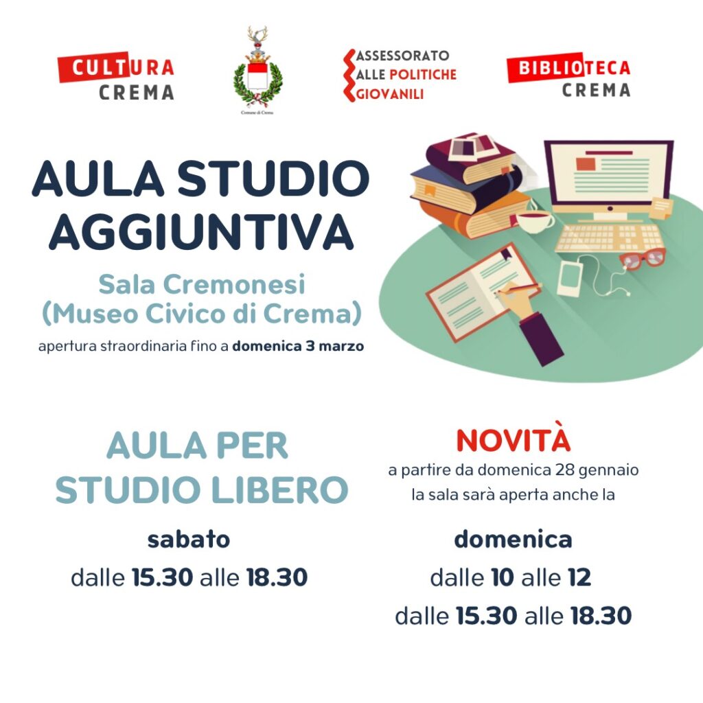Crema, aula studio aperta anche domenica pomeriggio