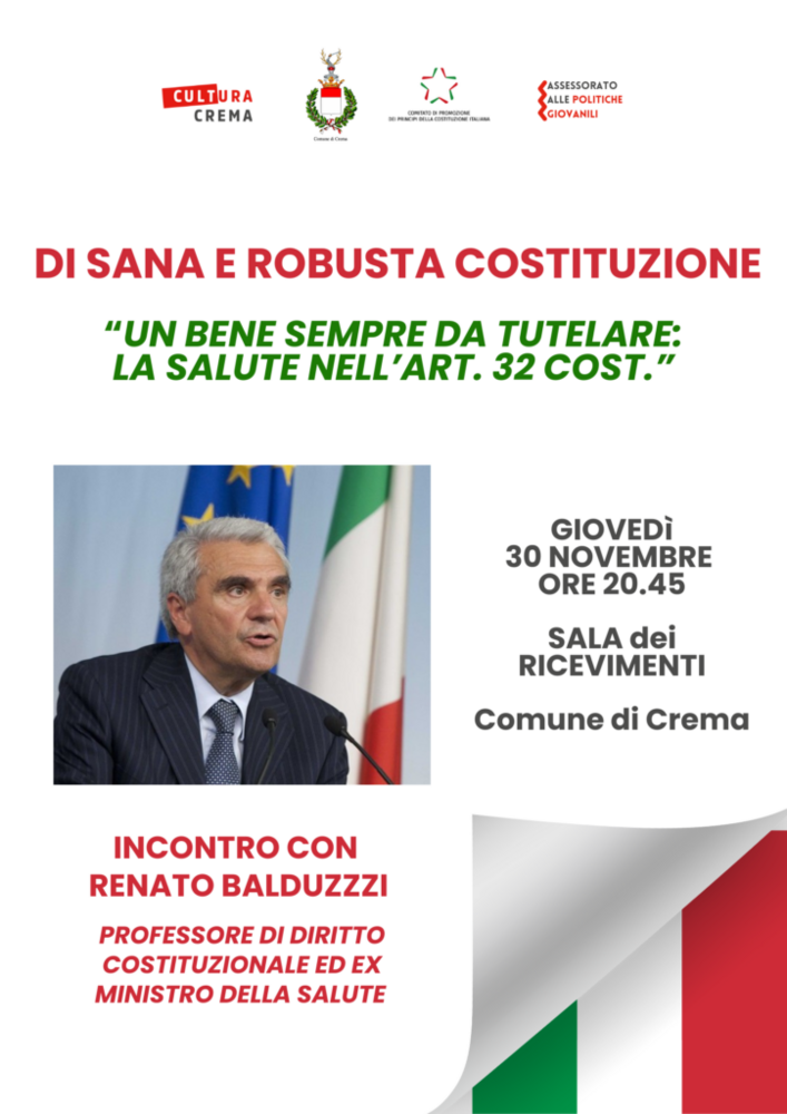 Il Comitato di Promozione dei Principi Costituzionali del Comune di Crema in collaborazione con l’assessorato alla Cultura e alle Politiche Giovanili presenta una serie di incontri sulla Costituzione dal titolo “Di sana e robusta Costituzione”. Il primo appuntamento si terrà giovedì 30 novembre e sarà focalizzato sul diritto alla salute, tema di rilevanza cruciale sancito […]