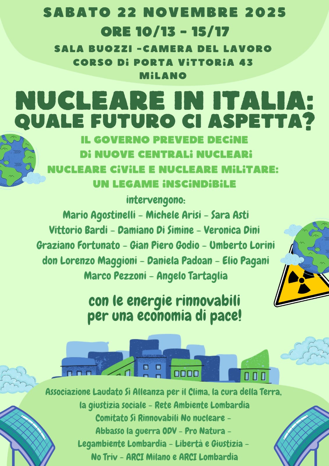 Un’alleanza tra Milano e territori, tra scienza e democrazia, tra lavoro e giustizia ambientale e sociale, tra etica ed economia di pace è il percorso che cerca di tracciare il convegno di sabato 22 novembre 2025 “NUCLEARE IN ITALIA: QUALE FUTURO CI ASPETTA?”.