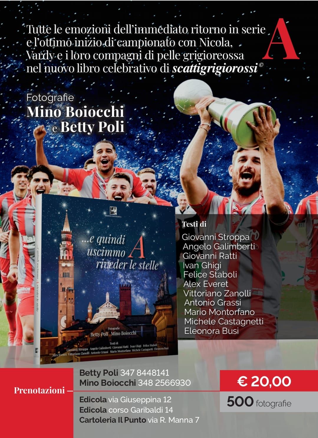 Prima lo scoramento del derby perso malamente a Brescia, poi l’altra mazzata di Mantova. Infine l’esonero di Stroppa. Quindi la rincorsa meravigliosa documentata dalle decine di foto scattate da Betty Poli e Mino Boiocchi nelle partite, con la squadra e con i tifosi. La promessa di Pickel e la sofferenza a La Spezia in una nottata entrata nella memoria e nel nostro cuore. In mezzo una curva sempre vicina ai giocatori e un sontuoso Vasquez, la grinta di Antov e Fulignati, De Luca che si sblocca, le magie di Van De Putte e Johnsen. Infine gli spareggi e la nottata in Liguria che ha consacrato il ritorno in serie A della Cremonese: 500 foto, voci, immagini e parole dalla Curva, dalla tribuna a dagli spogliatoi con la chicca degli addii di Michele Castagnetti e di Giovanni Stroppa. E poi Ratti, Everet, Galimberti e un SuperMario Montorfano.