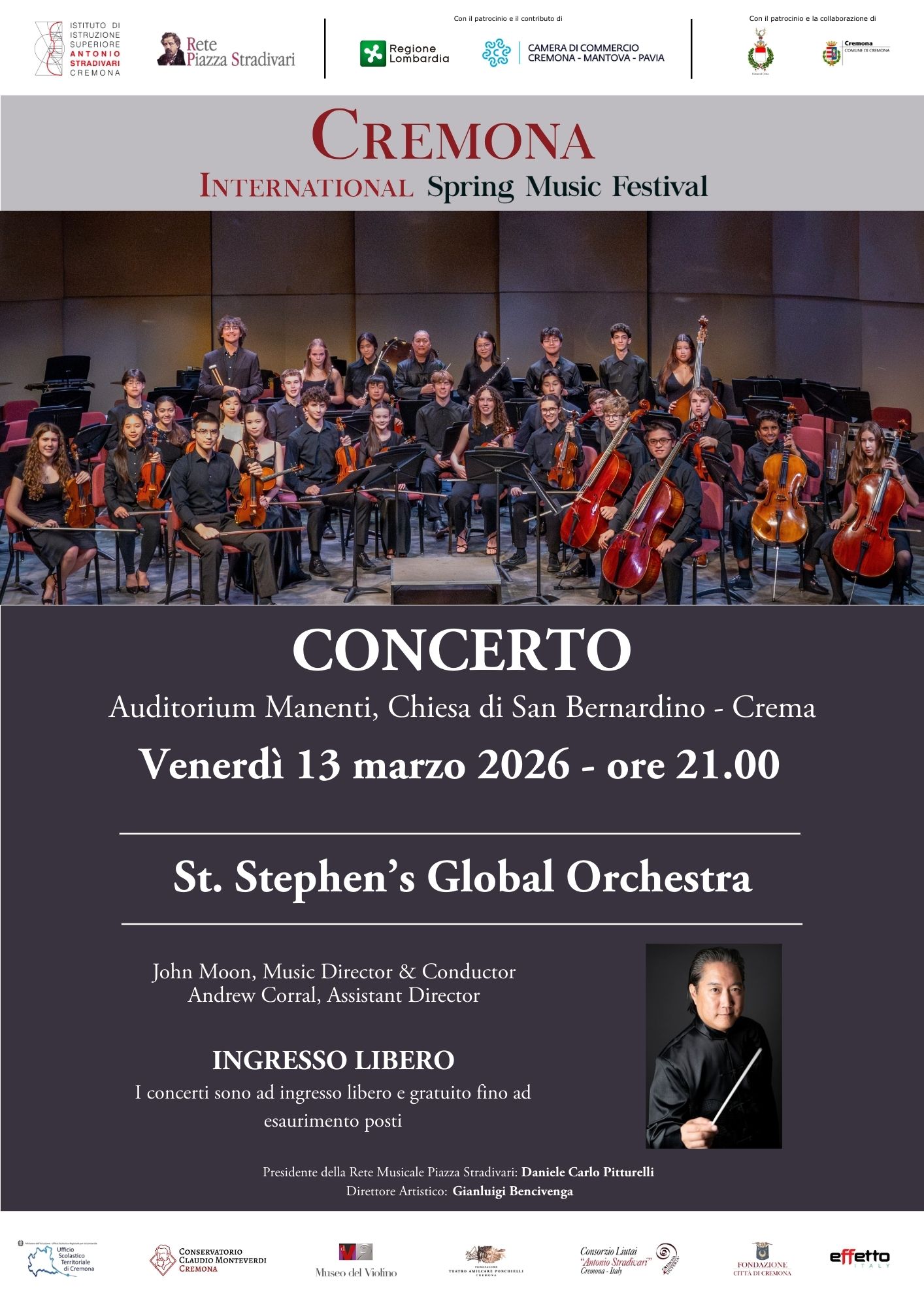 Il concerto del 5 marzo aprirà una serie di anteprime del festival e avrà immediato seguito nel successivo appuntamento del 13 marzo 2026 con la St. Stephen’s Global Orchestra sempre presso l’Auditorium Manenti di Crema.